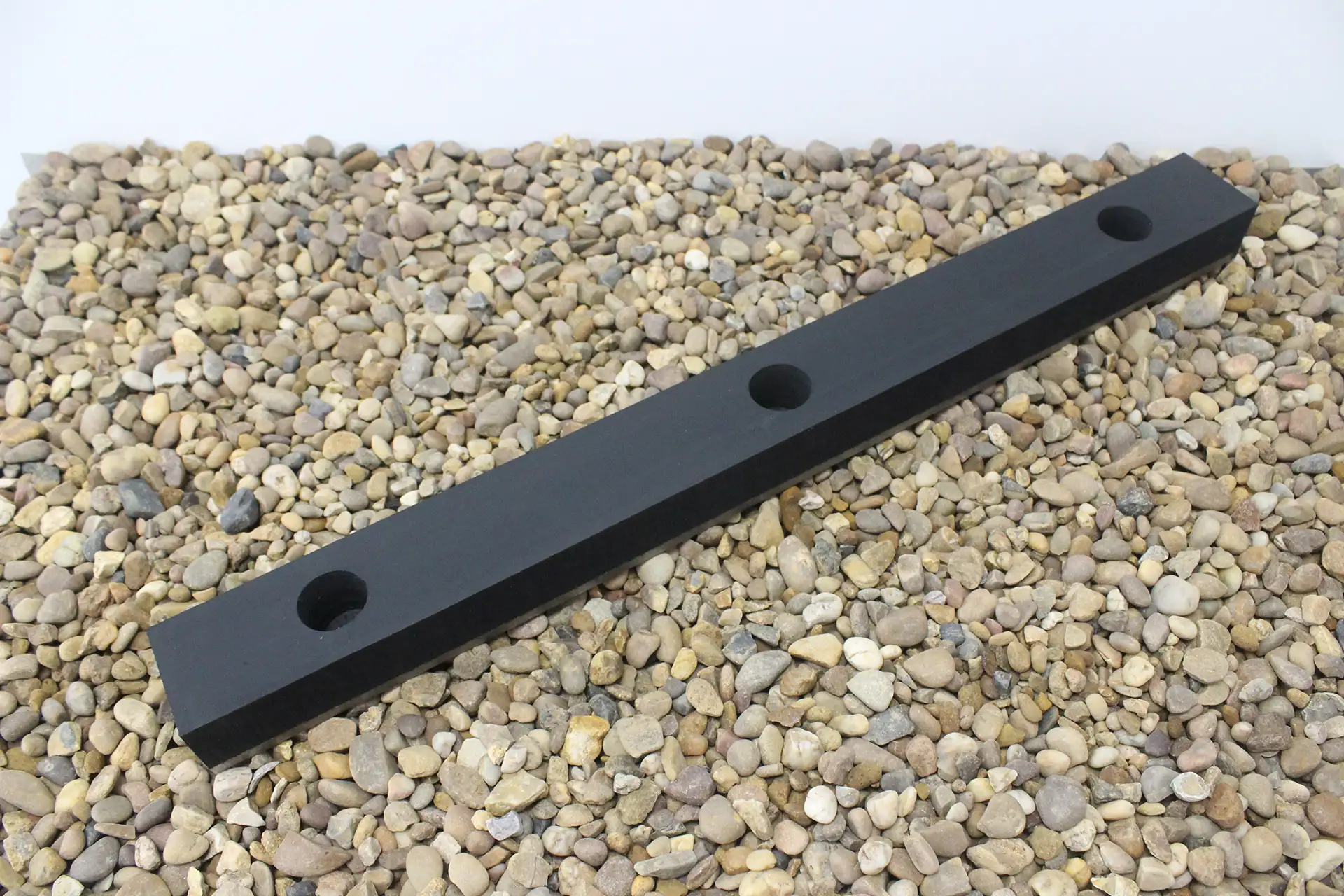 Rubber centre hold down bars are predominately used for clamping down the centre of tensionable screen media such as rubber screen cloths or polyurethane screen mats. They are made from a steel backed rubber bar that is 50mm thick overall with a 42mm thick layer of rubber and 8mm thick mild steel plate, this centre hold down bars are 75mm wide and the length is usually equal to length of the mat or cloth they are clamping down. The centre bars are drilled with fixing holes as required and cored to ensure there is enough clearance to get a socket of the right size onto the fixing size specified.