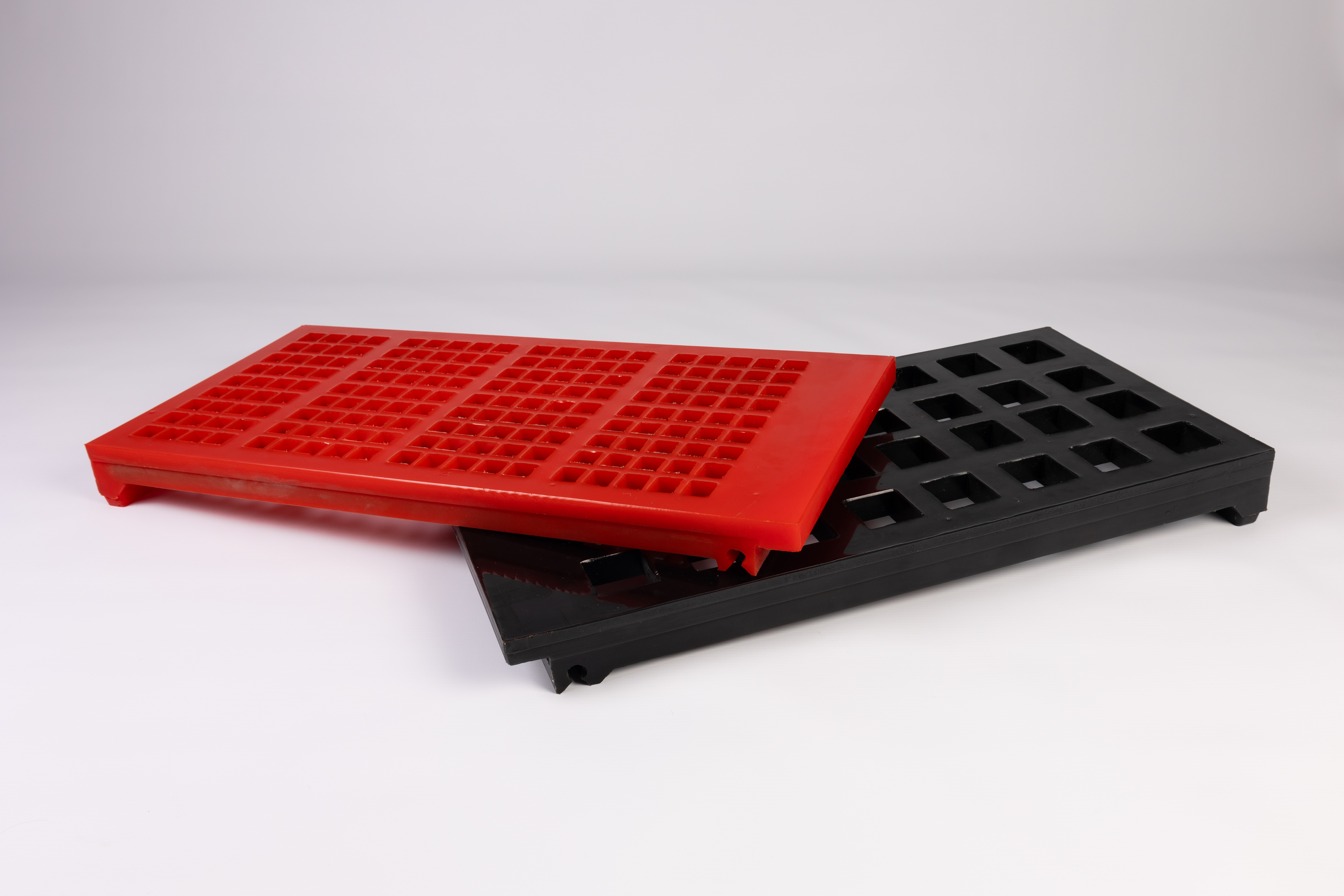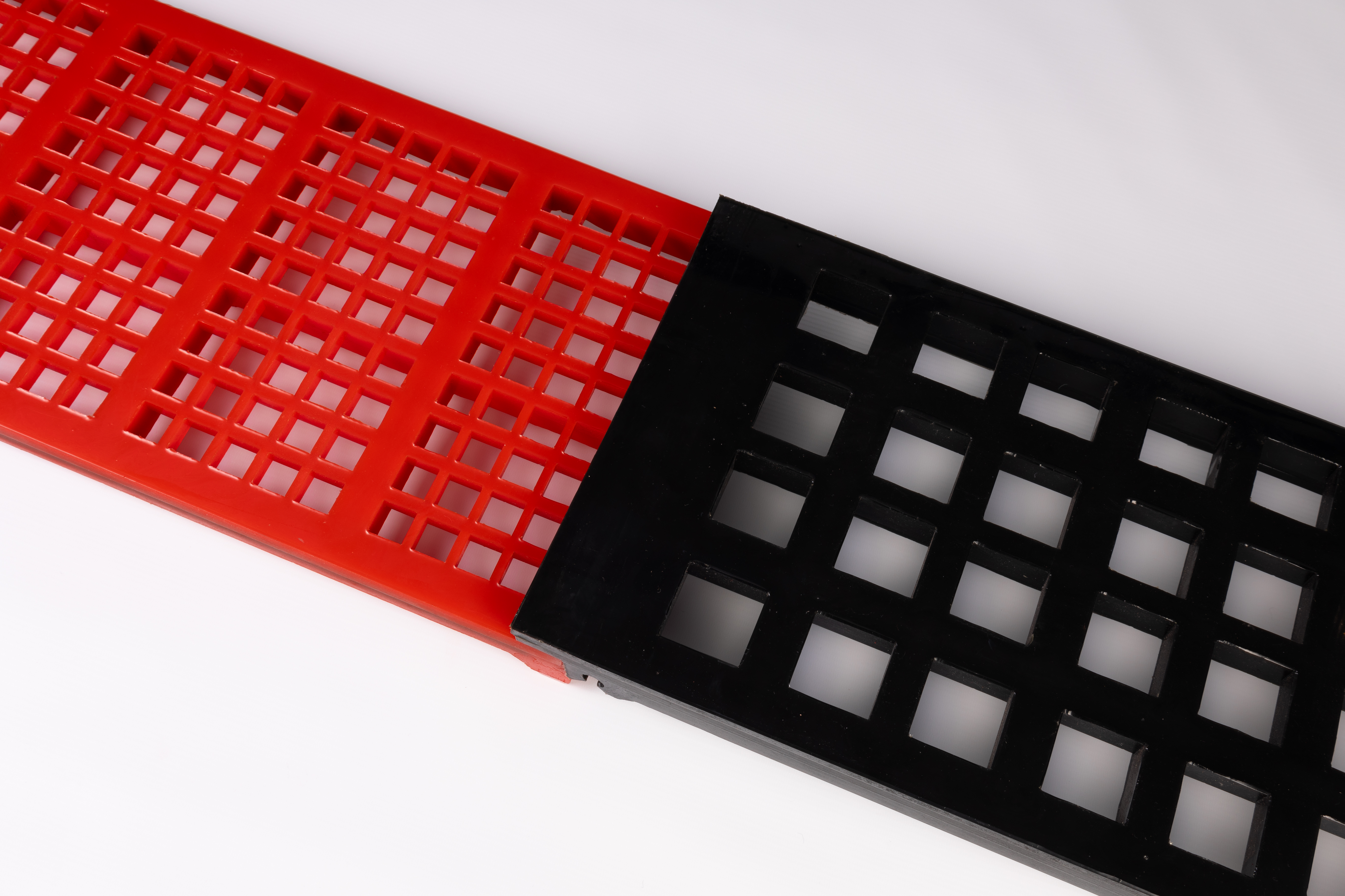 Polystep is one of the older modular systems in the market place. Its main benefit being that it is a unitised system (i.e. primarily one standard size of module). As the name of the system suggests the Polystep system creates steps down the length of the screen, causing the material to tumble which was believed by the designers to improve screening efficiency.