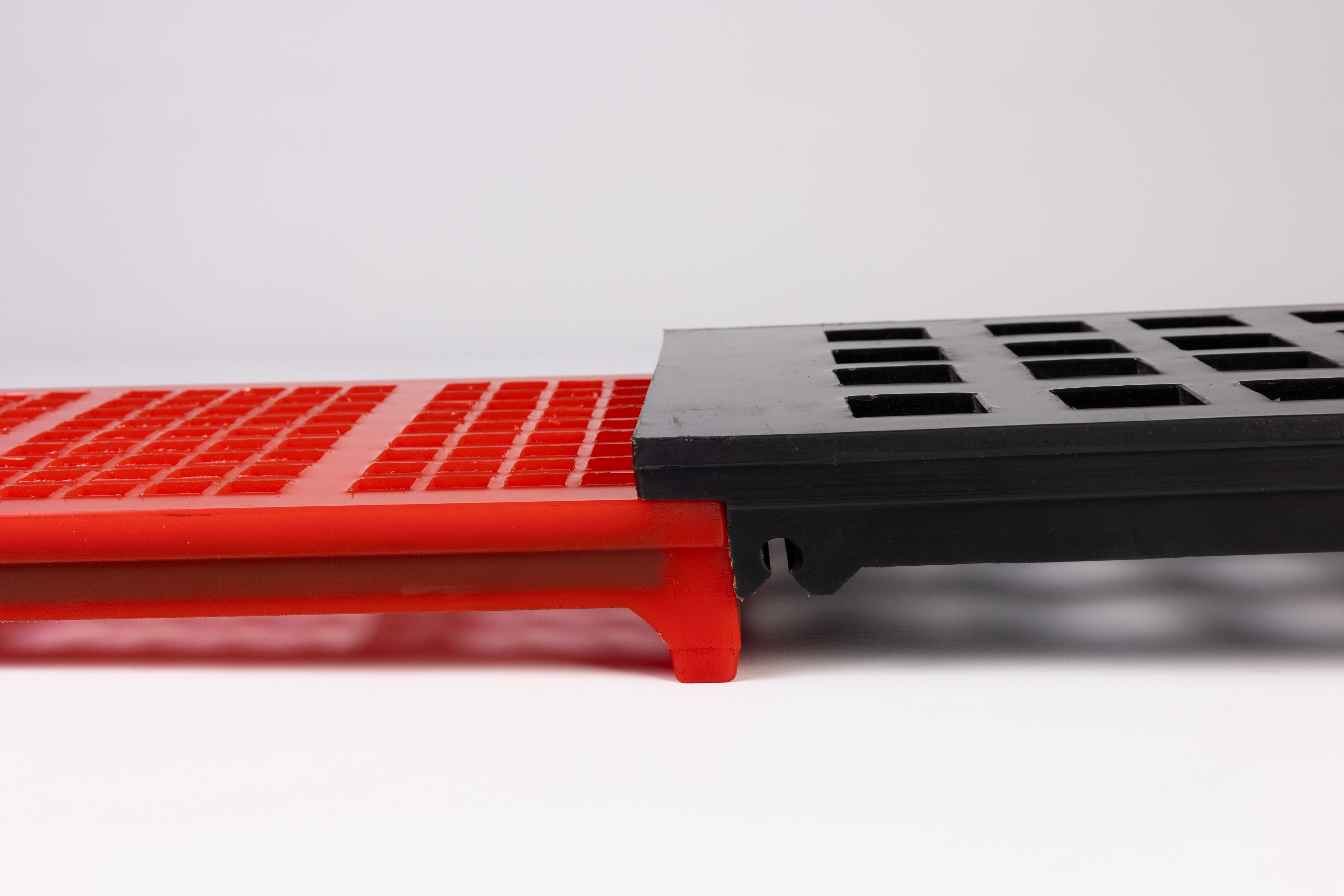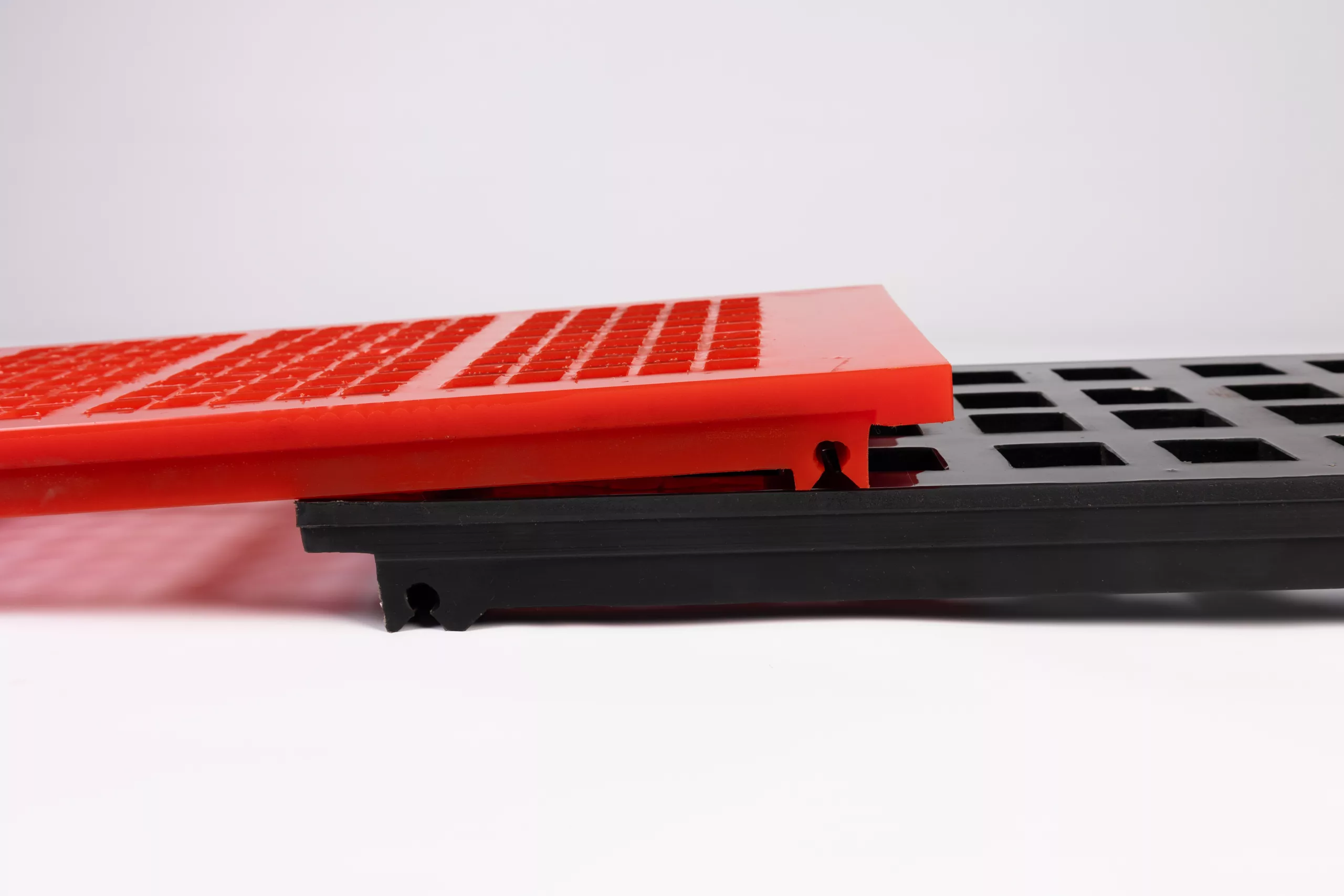 The Polystep normally uses side liners that are 120mm or 185mm high, held in place with two fixings. These can be produced from steel backed rubber or polyurethane.