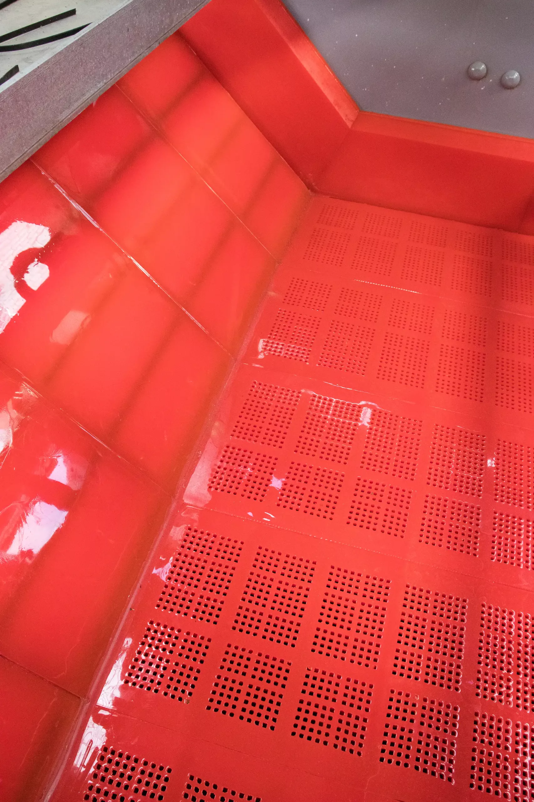 The modules have moulded profiles on two sides; these profiles mirror a polyurethane knockin bar which is fitted into a steel girder that runs the length of the screen.