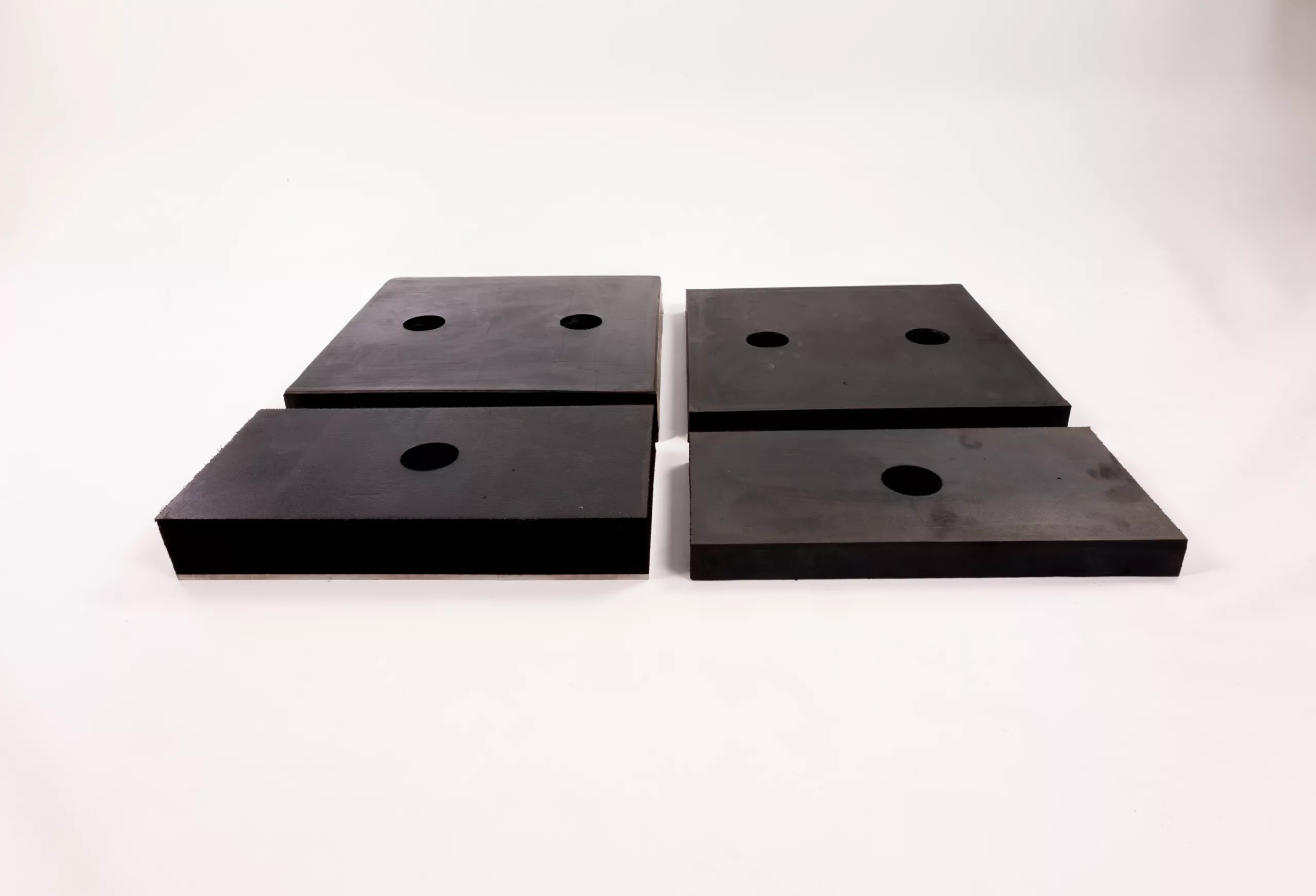 Bonded Steel Backed Liners – These are liners that are made up of a piece of rubber bonded to a piece of steel using a cold bonding method. These are used when specific thicknesses of rubber or steel are required, or the size of the liners cannot be made from our steel backed rubber sheeting stock.