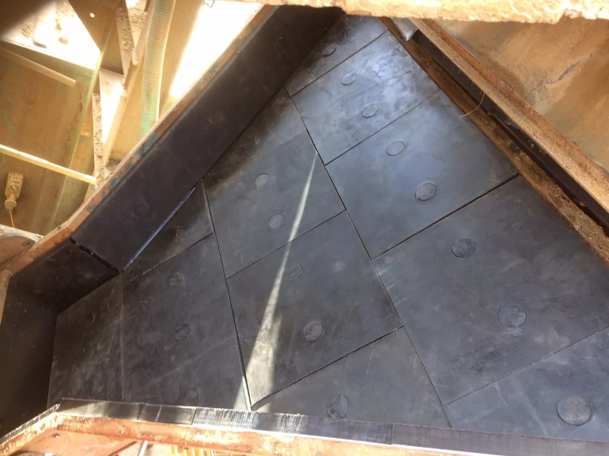The most common reason to install linings is to try to reduce wear. One way this can be achieved is by installing of linings with a longer service life. One of the most cost-effective lining materials on the market is rubber, as it has a good resistance to sliding wear and excellent impact resistance. Rubber comes in many varying forms such as pure rubber sheeting, rubber sheeting complete with a bonding layer, stabilized fabric backed rubber sheeting and steel backed rubber.